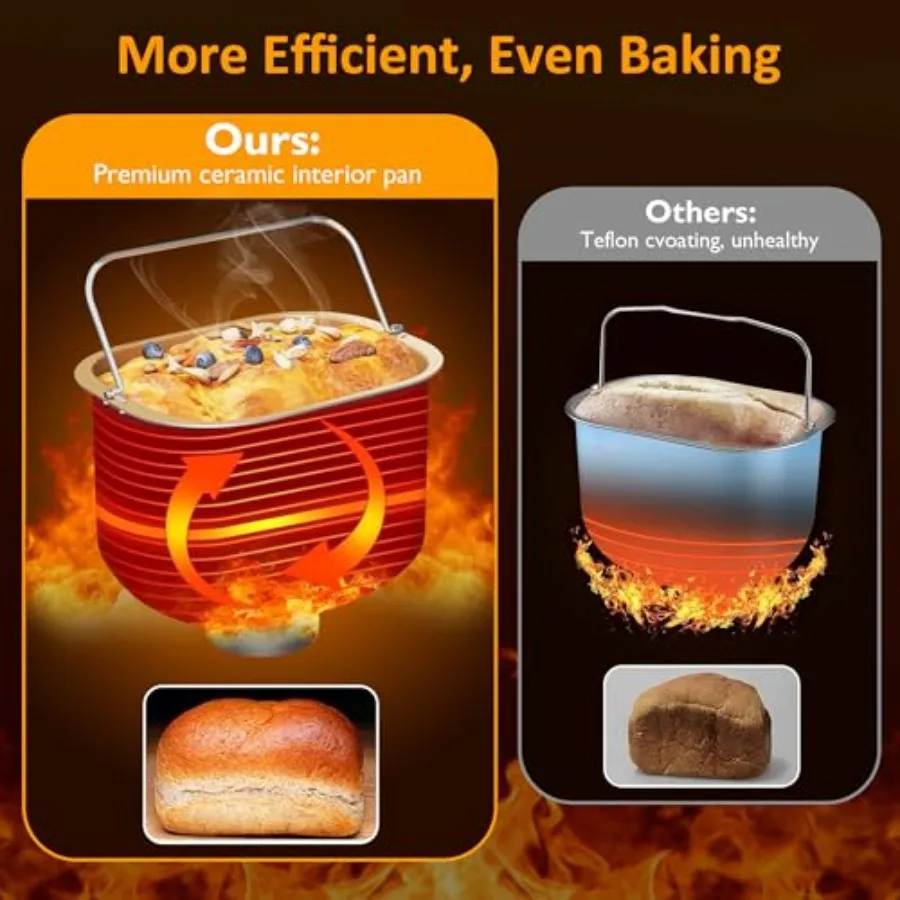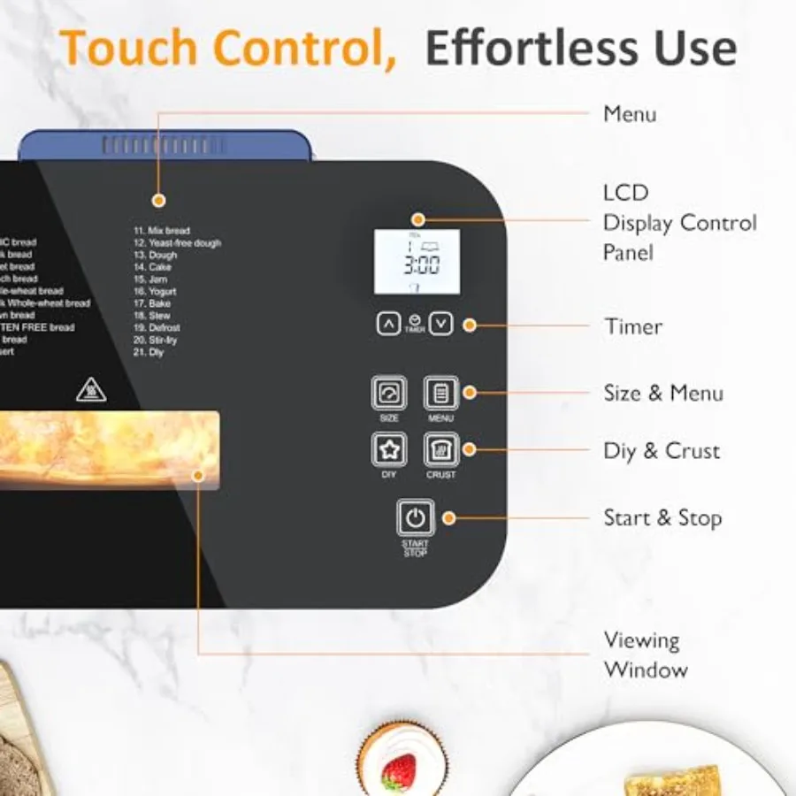 Enjoy fresh, bakery-style bread at home with the Sunvivi 2.2LB Bread Maker Machine. Designed for convenience and versatility, it features 21 preset programs, 3 loaf sizes, and 3 crust color options to suit every preference. The digital touch panel, 15-hour delay timer, and keep-warm function make baking simple and hands-free, while dedicated dough settings are perfect for pizza, rolls, and pastries.