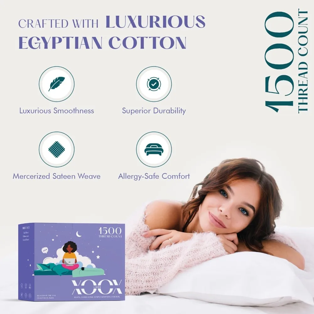 Experience the ultimate in luxury and comfort with the XOOX 100% Egyptian Cotton King Size Sheet Set. Crafted with a premium 1500 thread count, these sheets offer a silky-smooth texture that feels soft, cool, and breathable against the skin. Perfect for year-round comfort, the high-quality Egyptian cotton ensures durability while maintaining a luxurious hotel-style look and feel. The set is designed to fit king size beds perfectly, providing both elegance and everyday practicality. Its natural fibers allow for excellent moisture control and breathability, keeping you cool in the summer and cozy in the winter. With reinforced stitching and a timeless finish, these sheets combine long-lasting performance with refined sophistication. Elevate your bedroom with this premium sheet set and indulge in restful, refreshing sleep every night.