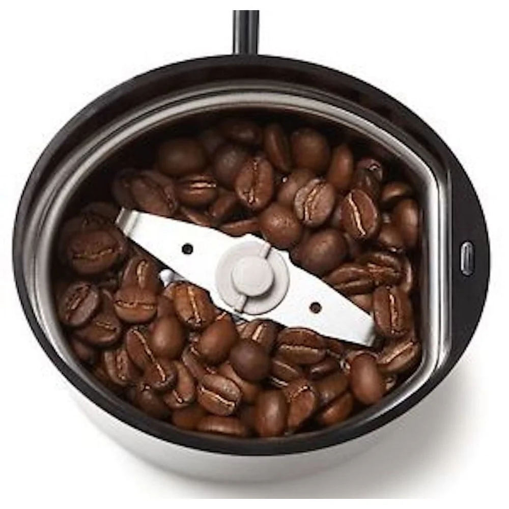 Grind your favorite coffee beans and spices effortlessly with this Electric Coffee and Spice Grinder, featuring sharp stainless steel blades for precision and consistency. With its powerful motor and one-touch operation, you can achieve fine to coarse grinds in seconds—perfect for coffee, herbs, nuts, and spices. The large-capacity chamber allows for multiple servings, while the transparent lid lets you monitor the grinding process easily. Designed with safety in mind, the grinder only operates when securely locked, ensuring worry-free use.
