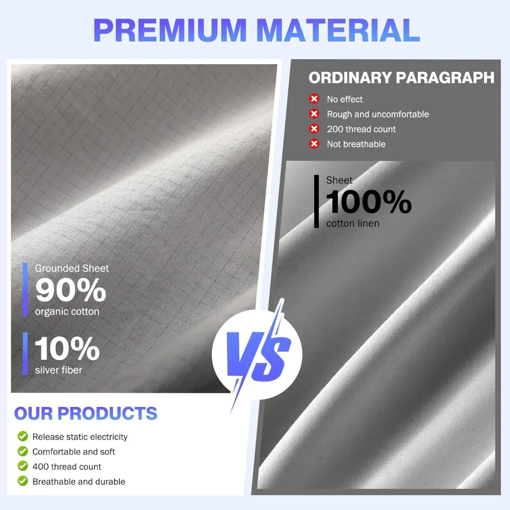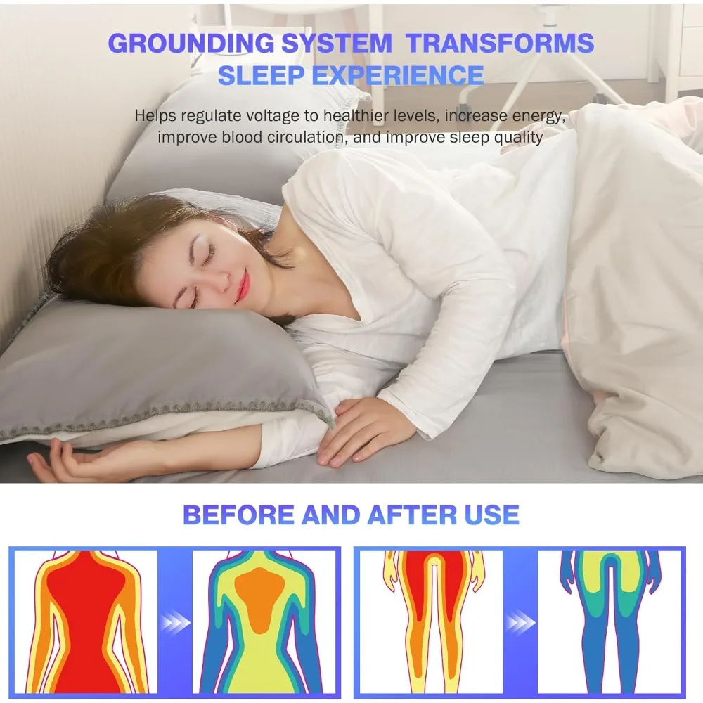 Improve your sleep quality and overall wellness with this king size grounding fitted sheet, made from 90% organic cotton and 10% pure silver fiber. Designed to connect your body with the Earth’s natural energy, this sheet promotes deeper, more restorative sleep, reduces stress, and supports better balance and recovery. The integrated silver fiber provides conductivity while maintaining a soft, breathable, and comfortable feel against the skin. Included with the bed grounding kit is a grounding cord, making setup quick and easy for home use. The fitted sheet style ensures a snug fit for king size mattresses, combining functionality with everyday comfort. Hypoallergenic and eco-friendly, it’s ideal for sensitive sleepers seeking a natural wellness solution. Durable and easy to care for, this grounding sheet offers long-lasting benefits while blending seamlessly with your bedroom décor. Transform your sleep routine with this grounding sheet and enjoy the restorative power of earthing each night.