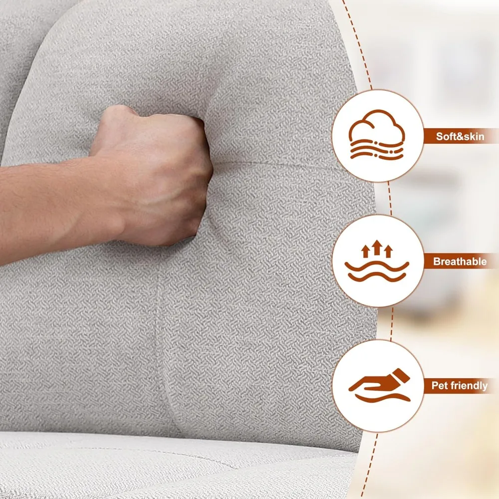 Upgrade your living space with this 98″ modern linen sectional sofa, designed for both comfort and contemporary style. Upholstered in soft, breathable linen fabric, it offers a cozy yet durable seating experience that’s perfect for everyday lounging, movie nights, or entertaining guests. The spacious L-shaped design provides ample room for family and friends, while the deep, cushioned seats ensure exceptional comfort and support. Built with a sturdy wooden frame and high-quality construction, this sectional is made to last and maintain its shape over time. Its sleek silhouette and neutral design make it a versatile addition to a variety of home décor styles, from modern to classic. Ideal for larger living rooms, apartments, or open-plan spaces, this sofa combines functionality and sophistication. Create a welcoming and stylish gathering space with this elegant sectional centerpiece.