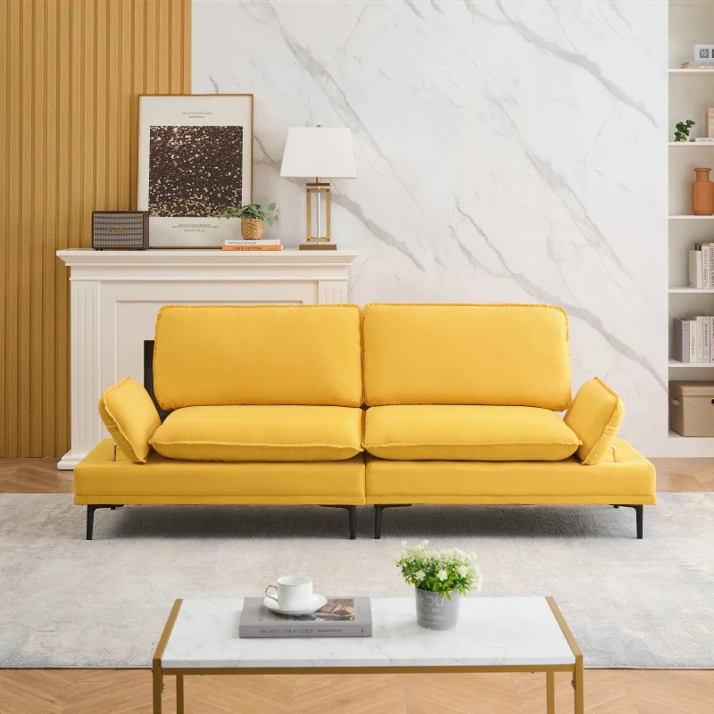 89 inch premium yellow cotton linen sofa, designed specifically for apartment living and office spaces, with adjustable armrests