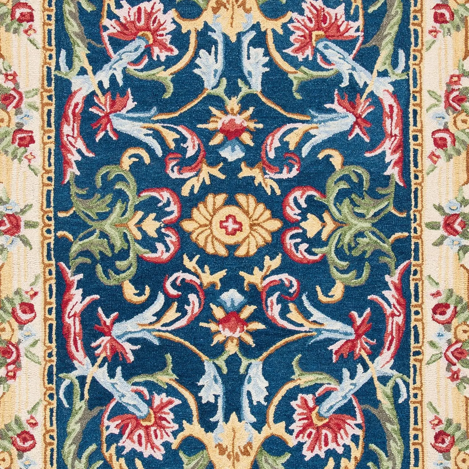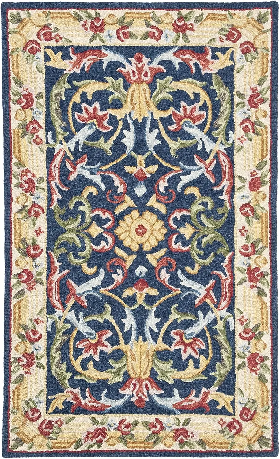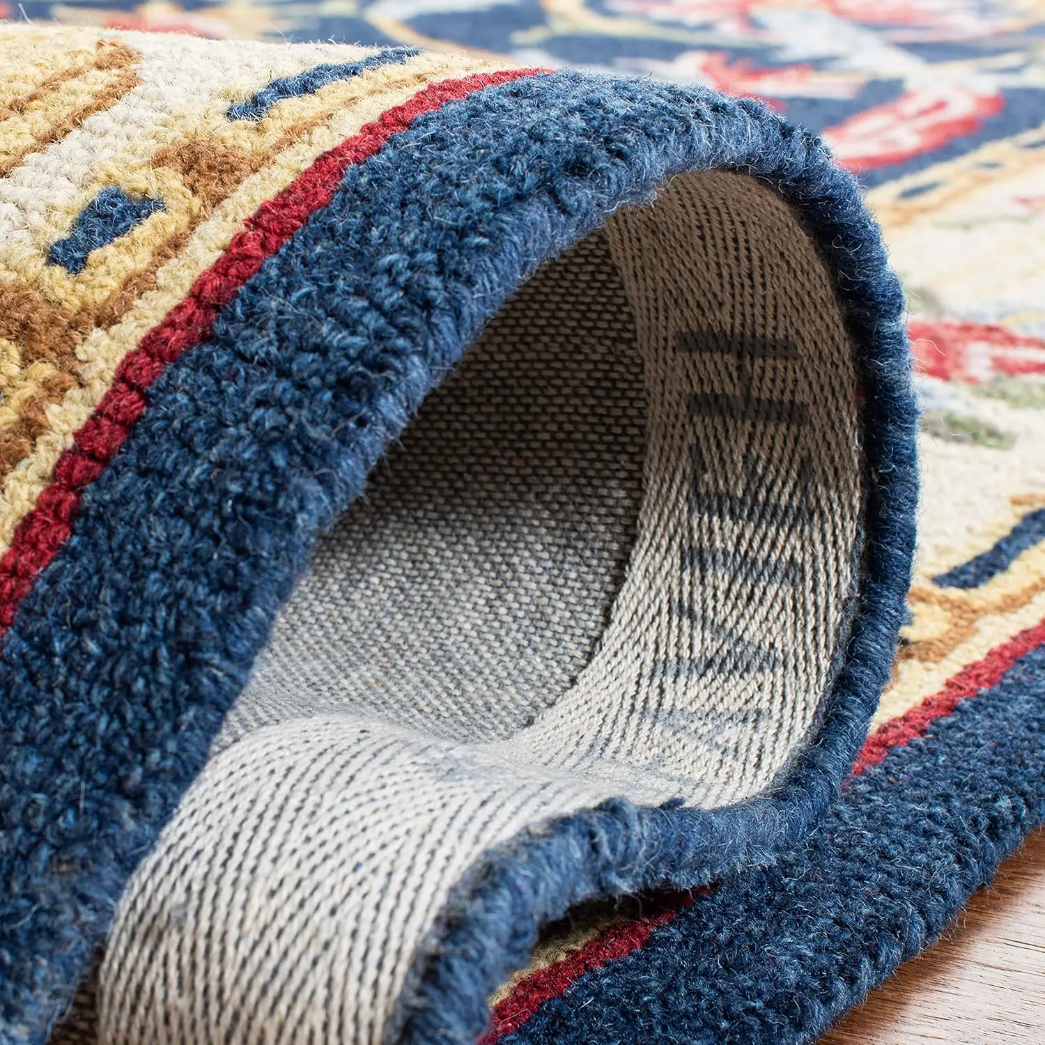 Add timeless beauty and durability to your home with the Safavieh Heritage Collection Handmade Wool Rug in navy and ivory. Expertly hand-tufted from 100% premium wool, this traditional oriental rug showcases intricate floral and medallion patterns inspired by classic Persian designs. The dense wool pile provides exceptional softness underfoot while offering long-lasting resilience, making it ideal for high-traffic areas like living rooms, entryways, and dining spaces. The rich navy and ivory tones add a touch of sophistication and warmth to any décor style, from vintage to contemporary. Naturally stain-resistant and easy to maintain, this rug combines craftsmanship with practicality. Whether used as a statement piece or a grounding accent, it elevates your room.