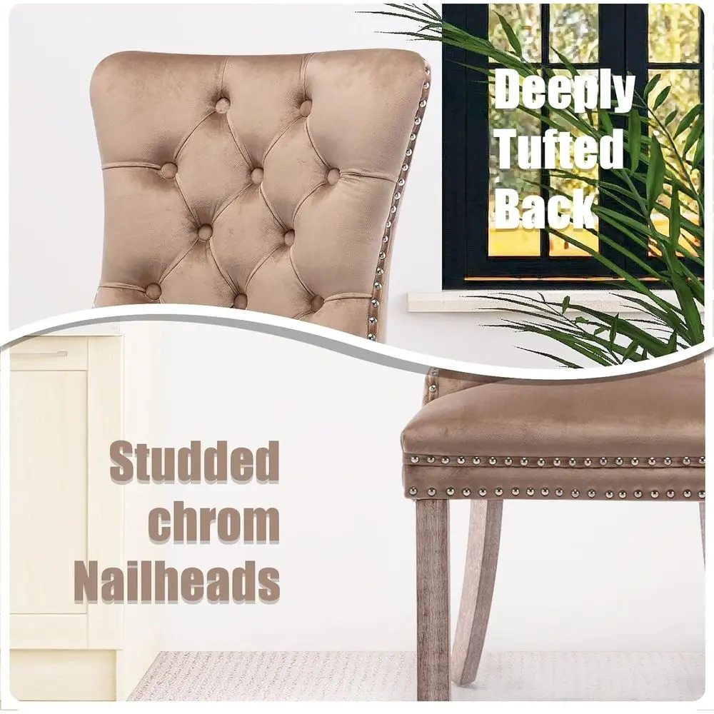 Set of 6 Modern Tufted Dining Chairs, High-End Upholstered Side Chairs with Button Back, Solid Wood Legs, Khaki Color